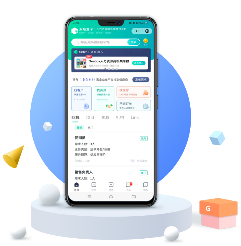 平台聚合20W+人力资源行业社群粉丝,精准覆盖目标人群,平台免费帮推需求,助力供需快速匹配。