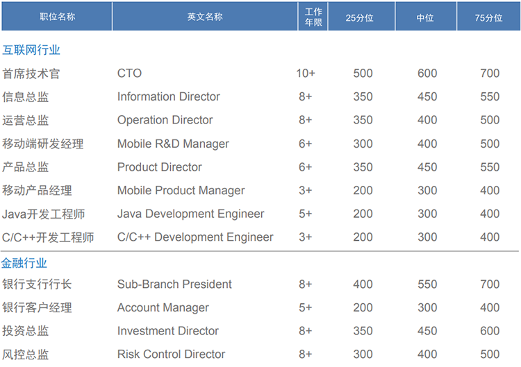 基本年薪*:以人民币 1000元为单位,指年度整体的现金收入=年度底薪+年度固定部分奖金